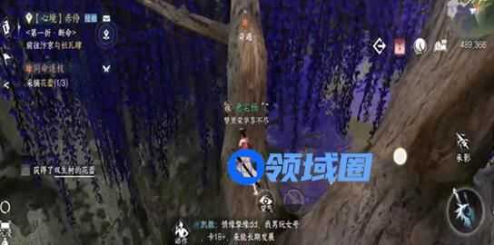 2、接着我们前往到双生树的位置,爬到树上进行观察即可。