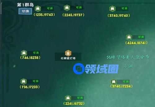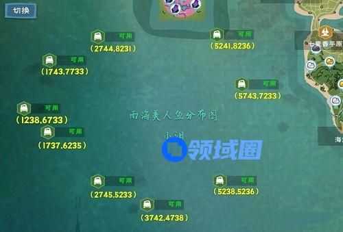 美人鱼分布点一共有5个区域,12小时左右刷新一次。