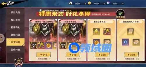 下面的召唤特惠没特别划算的,剑王特惠,只有前面两个最划算。