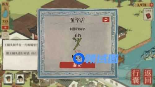 作为消耗品的鱼竿,玩家可以在码头旁边的鱼竿店消耗毛竹制作获得,制作1根鱼竿需要10个毛竹和50点体力。
