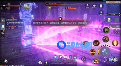 克尔鲁苏斯主要释放的技能为亡灵冲击、骸骨尖刺和献祭,除了献祭无法直接躲避只能硬抗以外,剩下的两个技能用位移技能躲避就可以避开,其他都不成什么大问题,召唤仪式这个技能,这个技能也是克尔鲁苏斯比较烦人的一个技能。当克尔鲁苏斯血量下降到50%左右,他会开始释放召唤仪式技能,会召唤骸骨士兵,这个时候是清除掉阵法的三根石柱。