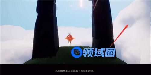 在跳台上之后可以看到右上角有一个云朵,雨林上方显露出了网状的通道,这里就是风行季地图的入口了。