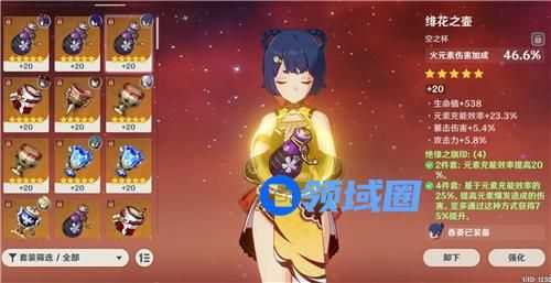 总之,香菱的杯子带火伤杯是目前固定的套路,没有更多的选择余地,所以没有火伤杯子的玩家赶紧去刷吧,是在不行先用攻击杯也是可以的。