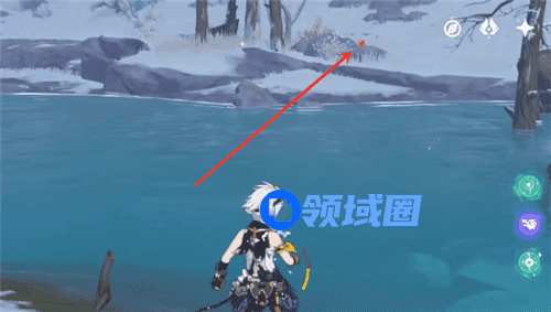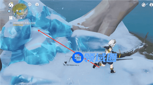 第2个,在河中的一个地块上,不过是在冰块里面,需要带深赤之石来打碎它,其实就是地上的红色石头,这个地方附近就有。