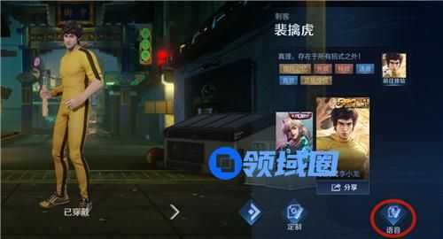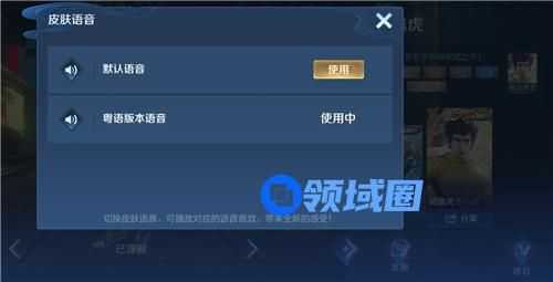 从弹出来的窗口中进行切换。同样的,没有李小龙皮肤,是不会显示语音切换功能的。