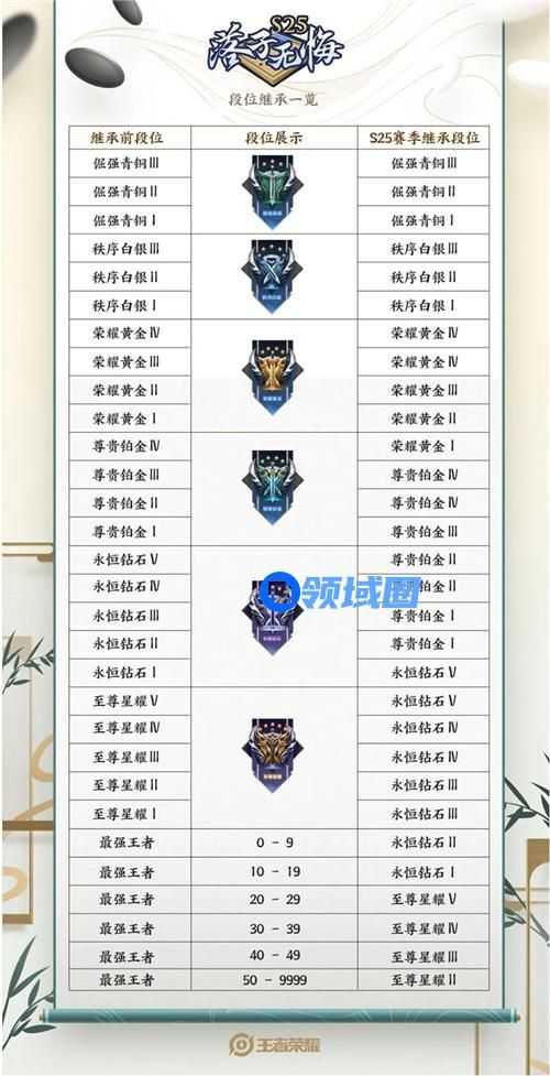 王者荣耀新赛季已经到来了,最近玩家们都很关心自己的段位会继承到什么段,因此有人就在问s25赛季的最新段位继承规则,那么接下来就由小编来为大家介绍一下最新的段位继承规则,赶紧来看看吧。