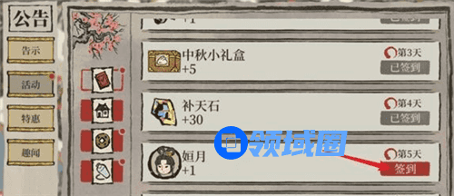言归正传,这个就是姮月获取方法,大家现在签到还来得及,刚刚好5天,再晚两天就无法获得了。