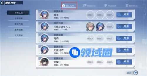 单人可以从世界频道里直接申请也可以打开组队大厅找队伍,自己也可以创建队伍拉人。