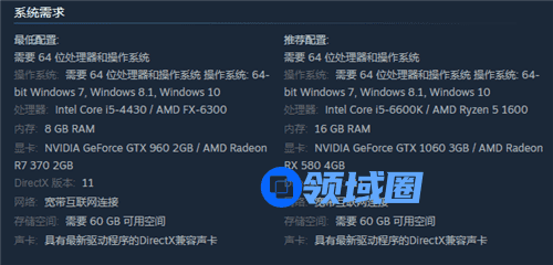 显卡: NVIDIA GeForce GTX 1060 3GB / AMD Radeon RX 580 4GB