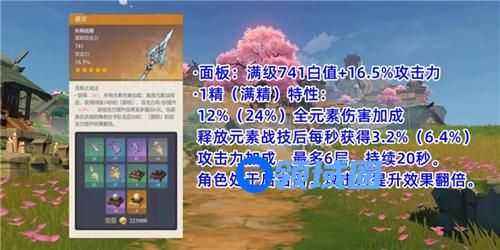 息灾这把五星武器单从面板来看,高额的白字,对于香菱来说非常棒,再加上这特效,能够获得元素伤害加成,并且是所有元素,也就是说任何长柄武器角色都能用,除了这个,还有攻击力加成,高达6层,能够叠加18%多的攻击力。
