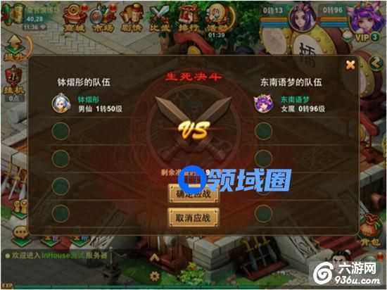 五、再次点击【决斗图标】,打开生死决斗界面,即可查看双方队伍配置信息。