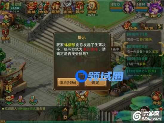 四、“被挑战方”收到别人的挑战书后,点击选项“确定”后,将会被传入PK地图【皇宫演练场】, 如果点击【取消】或则3分内不操作,则为:拒绝生死决斗战斗。