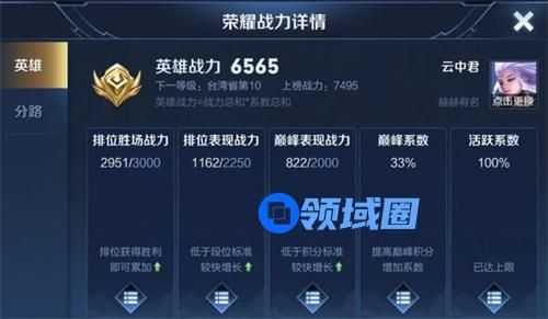 总而言之,新赛季掉的战力还是挺多的,基本上只有上个赛季的60%左右,除非你不怎么打巅峰赛,排位胜场战力占比很高的那种,才能继承70%的战力。