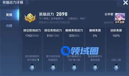 新赛季英雄战力计算公式:(上赛季排位胜场战力-200)+(上赛季排位表现战力+巅峰表现战力)*0.7