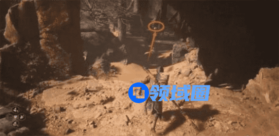 3、然后继续往下走,到达户外流沙平台上往下滑,在滑下滑坡的时候跳起来按重攻击,就可以跳上去,在上面即可拿到【泡酒物】虎舍利。