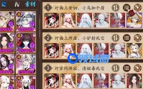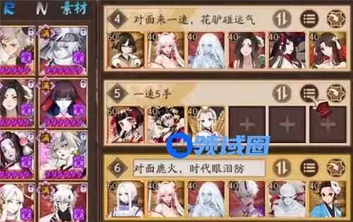 阵容四:打鹿火,可以不准备,基本不会遇见,5手炭之郎。夜刀神基本选,跳过回合就行,可以吃,全体真伤。