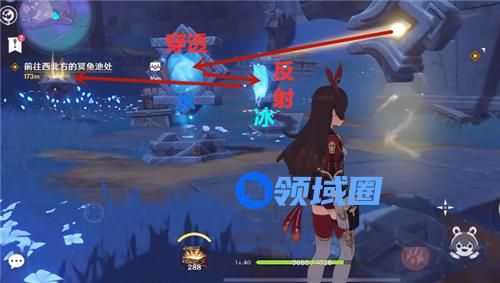 2、冰形态(用冰元素攻击):此时光线会被镜子【反射】。在冰形态下,可用火元素攻击,让其变会水形态。