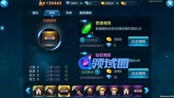 钻石精练需要【钻石精炼石】,每次精练可增加全部属性各5点
