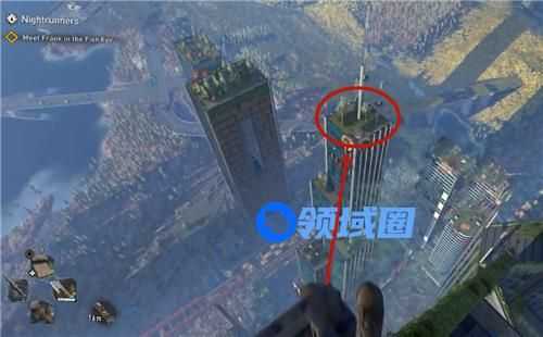 从vnc大厦往下飞,飞到这个楼顶上。