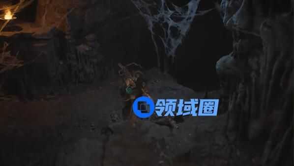 接着跳下平台,跳下去后立刻往右边走,进入一个充满蛛网的洞穴内部。