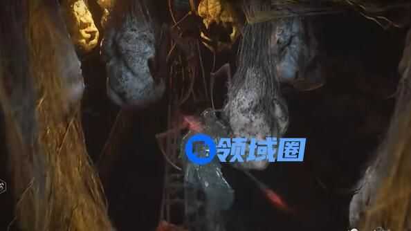 接着我们穿过一座缠满蛛丝且诡异的吊桥,然后我们一直走,还会看见一个有蛛丝构成的桥,桥的周围还有很多茧。