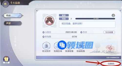 然后在个人信息的档案界面中,点击右下角的【兑换码】按钮。