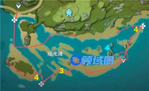 PS:采集路线为红色箭头,星螺就在箭头沿途的路线上,黄色数字代表附近星螺的数量。