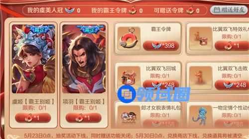 首先项羽和虞姬都可以用【一个霸王令牌】兑换,一块霸王令牌需要用398个虞美人冠来兑换,按照平均1元就能抽到两个虞美人冠的概率来计算,大概抽【200元左右】就能凑齐398个虞美人冠。