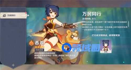 2、香菱:通关深境螺旋3-3,通过万民同行活动免费领取。