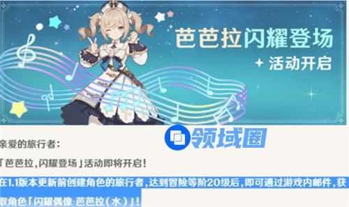 6、芭芭拉:1.1版本前注册账号,在升到20级的时候免费领取。