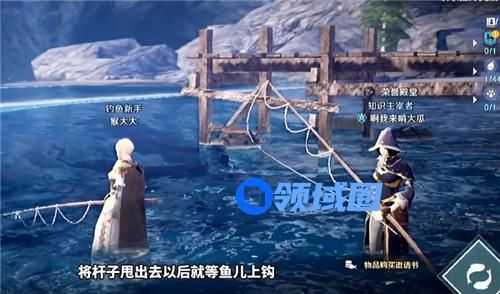 抛出鱼竿后,等待鱼饵上钩即可,右下角会切换为一个双鱼的图标。