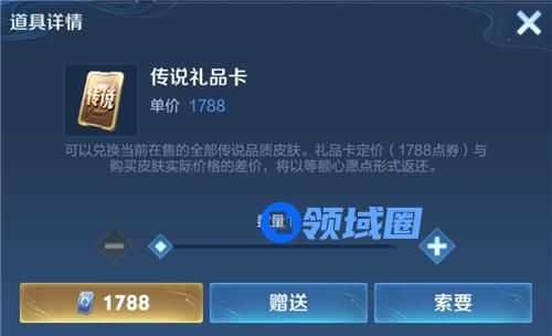 传说礼品卡在平时主要是作为礼物送给好友的,送指定的传说皮肤,不如将选择权交给好友,让他来决定买哪一款传说皮肤。毕竟有时候想送好友皮肤的时候,也不知道他喜欢啥皮肤,送错了就很尴尬了。