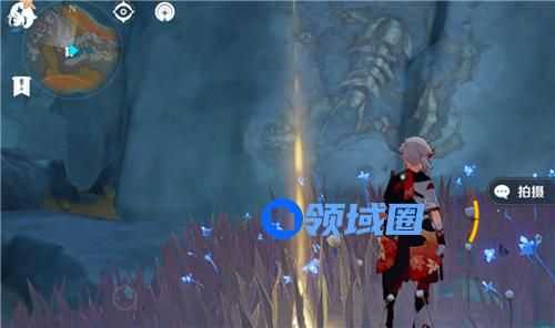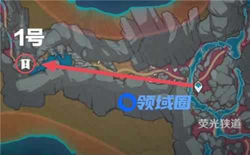 1号化石:从荧光狭道锚点一路直走,从高处向下飞,在路边的石壁上。