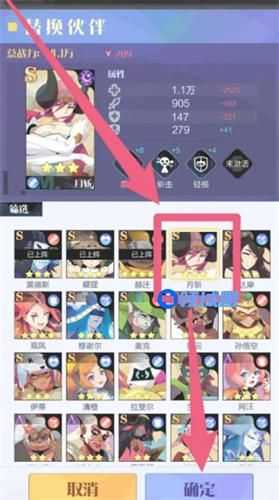 3、之后就会进入替换伙伴选项,玩家们选择好想要替换的角色之后点击下方的确定就可以了。