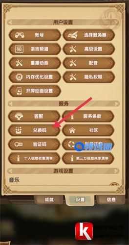 3、然后我们就可以在服务栏中看见兑换码选项。