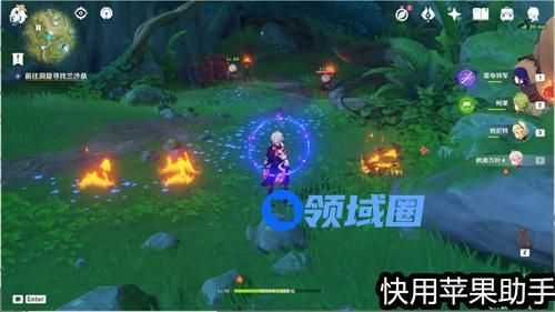 根据指引前往洞窟寻找兰沙恭,往地图的东南方向走,前往洞窟清理洞窟门口的丘丘人。