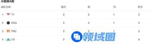 2022英雄联盟全球总决赛第一轮小组赛积分排名
