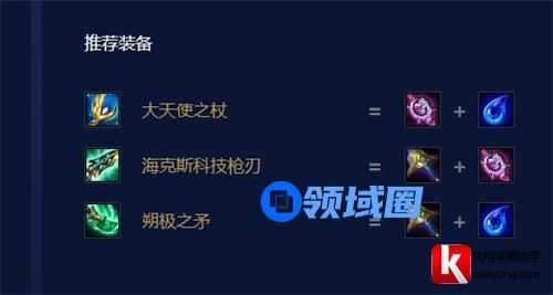 总之索尔装备一般都是选择使用这个公式:回蓝+法强+回复。最佳的选择就是,法转,科技枪,大天使。其中大天使加启动和法强,而科技枪回复,法转增加技能频率。