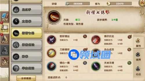 刀断情终 实招 |范围 半圆3米|冷却时间 8秒 |消耗 180内力