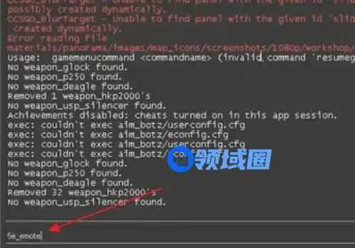 2、跳出控制台之后再输入框中输入(5e_emote)然后按住回车。