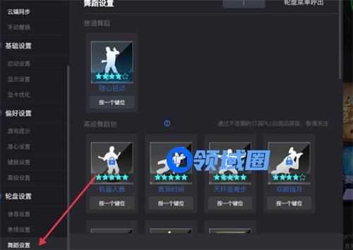 2、找到下方的跳舞设置,就可以自己调试舞蹈的按键了。