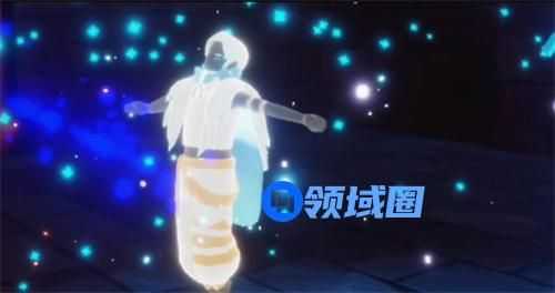 总之欧若拉联动先祖需要我们先来到霞谷领奖台找到联动向导,交互后会被霞谷领奖台,这里我们就会看见一位神圣的神明先祖,在空中飘浮着仰望星空,这就是欧若拉先祖。