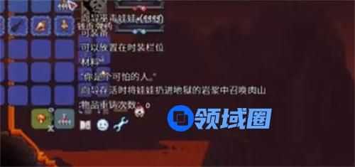 注意:玩家在刷巫毒恶魔的时候千万不要在岩浆当中击杀,不然掉落的向导巫毒娃娃会直接掉落到岩浆当中召唤出肉山。