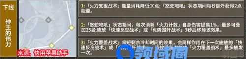 没有专武的玩家可以选择-下黄线,这条线路主打的就是怒蛇咆哮的伤害效果,输出仅次于红线。但对于专武没有太大的要求,所以是平民首选。