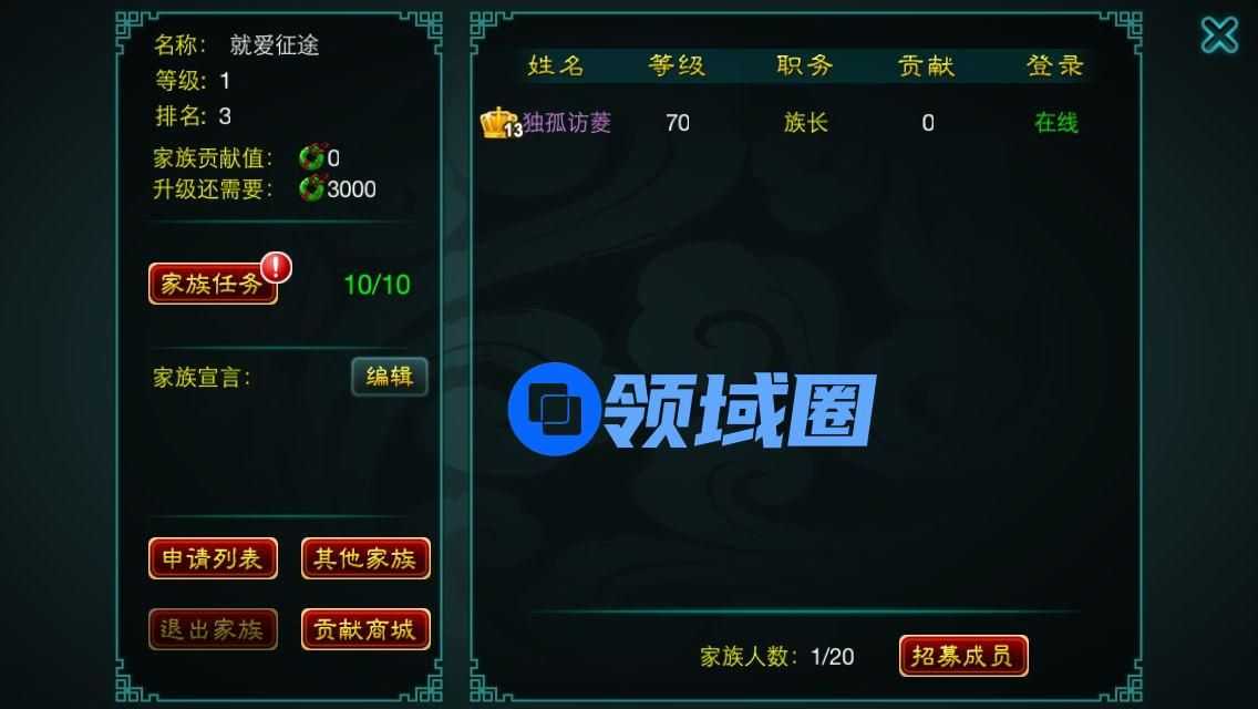 3、玩家本身没有加入任何家族、帮会。