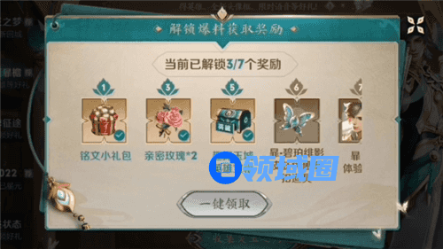 进去以后,我们点击右上角的奖励,就可以查看到解锁获取奖励,而暃的信物就是第六档奖励。