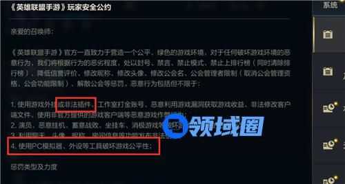 因为在英雄联盟手游的邮件,公告里面的安全公约说的很清楚,一旦发现使用pc模拟器或者插件等外设工具,就会封禁账号,并且根据严重程度来划分惩罚力度。