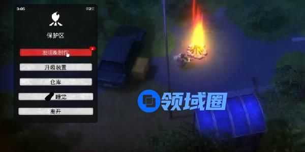 3、找到一个火堆休息然后打开操作界面选择发明&制作,查看需要的材料做好准备工作。