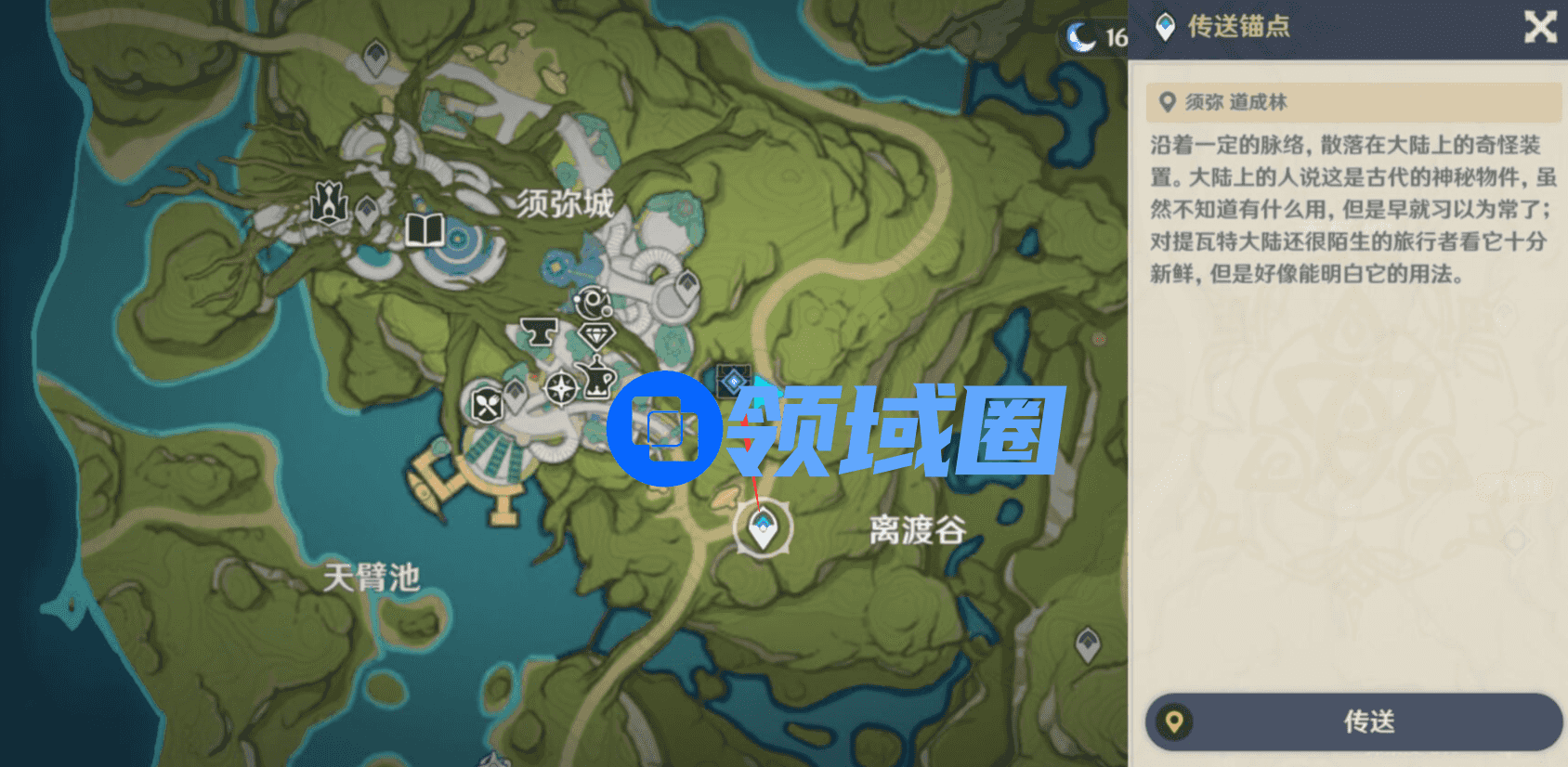 2、传送到离渡谷的传送点,然后朝着左上方走。