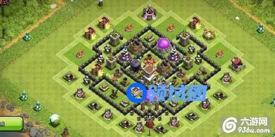 小编比较钟爱的一款7本阵,一直在初7用到后7的,低本阵虽然防不了那么多流派,7本最怕就是龙流,不过那是在部落战哈,如果日常Farm保资源的这款 还是相对不错的。其实防空可以和后面的迫机炮对换,只是我觉得迫机炮作用比防空作用大吧,也没几个会带龙打资源吧。